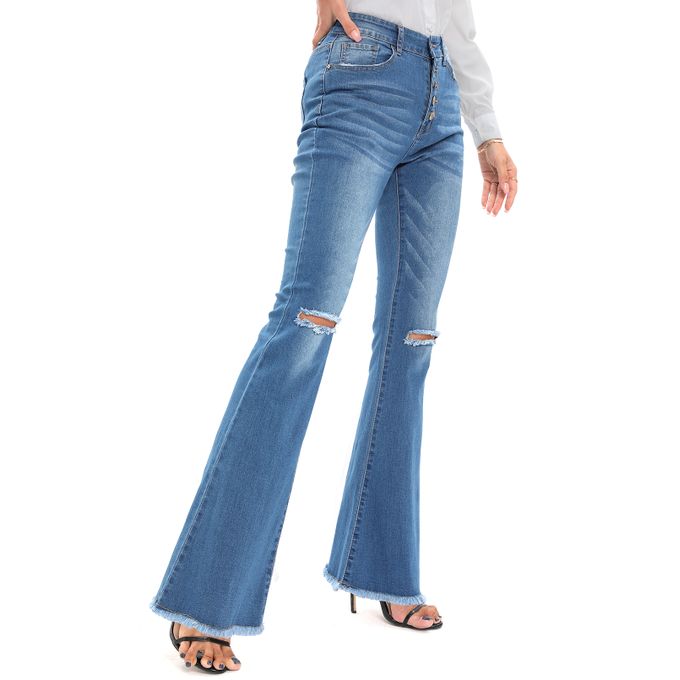/ ASHION Women’s High-Waist Bell-Bottom Denim Jeans